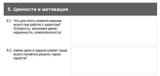 А чтобы не давать мозгу водить вас за нос и превратить смутные ощущения в точный план и стратегию, мы разработали специальный шаблон для описания клиента. Его можно скачать в конце этой статьи. В нем 6 блоков вопросов, которые помогут сфокусироваться и не упустить важное при определении клиента.